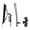 Легкий софтбоксДля отримання м'якого світлового потоку в комплекті оснащені прямокутний софтбокс і екран, що розсіюЄ, із синтетичного напівпрозорого матеріалу. Кріплення екран розсіюЄ за рахунок «липучки Velcro» велкро на звороті софтбокс. По периметру софтбоксу знаходиться світловідбивне «срібне» покриття.