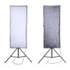 Легкий софтбоксДля отримання м'якого світлового потоку в комплекті оснащені прямокутний софтбокс і екран, що розсіюЄ, із синтетичного напівпрозорого матеріалу. Кріплення екран розсіюЄ за рахунок «липучки Velcro» велкро на звороті софтбокс. По периметру софтбоксу знаходиться світловідбивне «срібне» покриття.